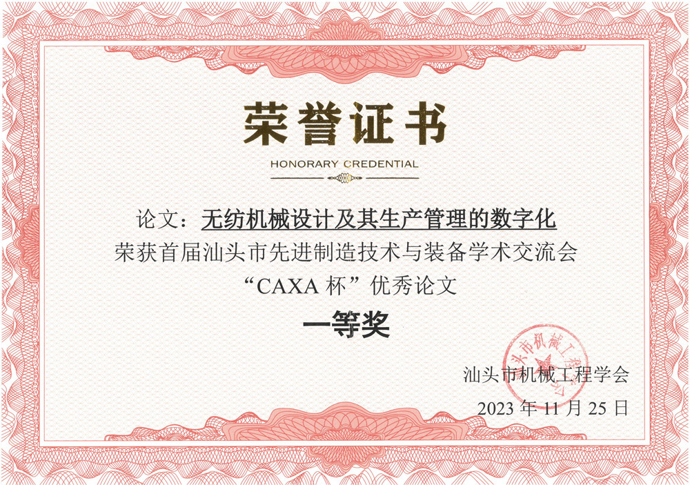 First Prize of Shantou Science and Technology Award (High speed random carding machine)